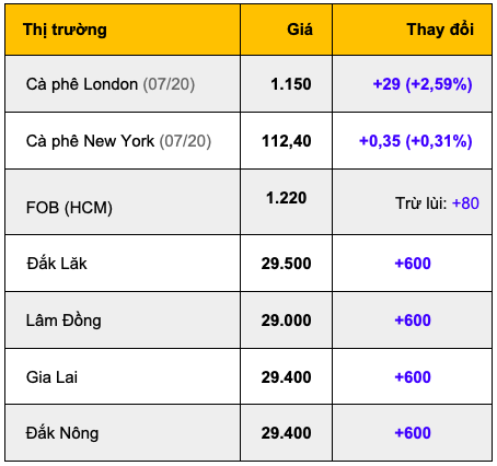 Xem chi tiết giá cà phê cập nhật liên tục tại đây.