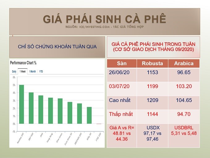 Diễn biến thị trường cà phê tuần từ 27/06 - 05/07/2020: Hai sàn phái sinh cùng tăng.