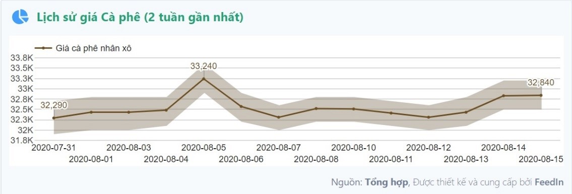 Giá cà phê xuất khẩu không thay đổi mấy so với tuần kết thúc ngày 08/08/2020 tức +70/+90 Usd/tấn giao hàng qua lan can tàu (Fob) so với giá niêm yết sàn London tháng 11/2020. Như vậy, giá tại vùng sản xuất nằm ở +30/+50 Usd/tấn.