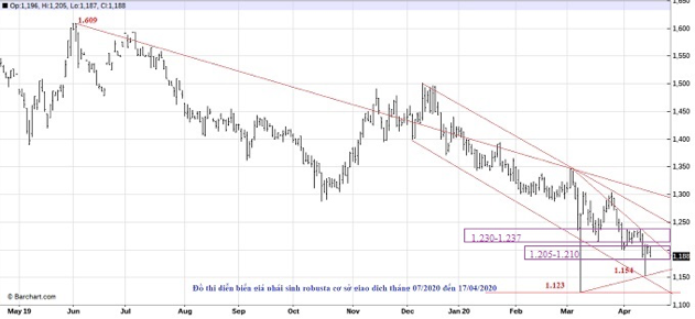 Phân tích kỹ thuật về giá cà phê robusta cho tuần từ 20 - 24/04/2020: Áp lực bán còn trước ngày thông báo giao hàng tháng 05/2020